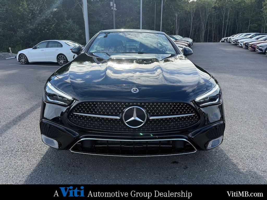 The 2025 Mercedes-Benz CLE is a stylish and versatile vehicle, available as both a coupe and a convertible. Its sleek, aerodynamic design features a bold front grille, LED headlights, and a sporty silhouette that stands out on the road. The convertible version offers a triple-layer acoustic fabric soft top that lowers in seconds, providing an open-air driving experience.